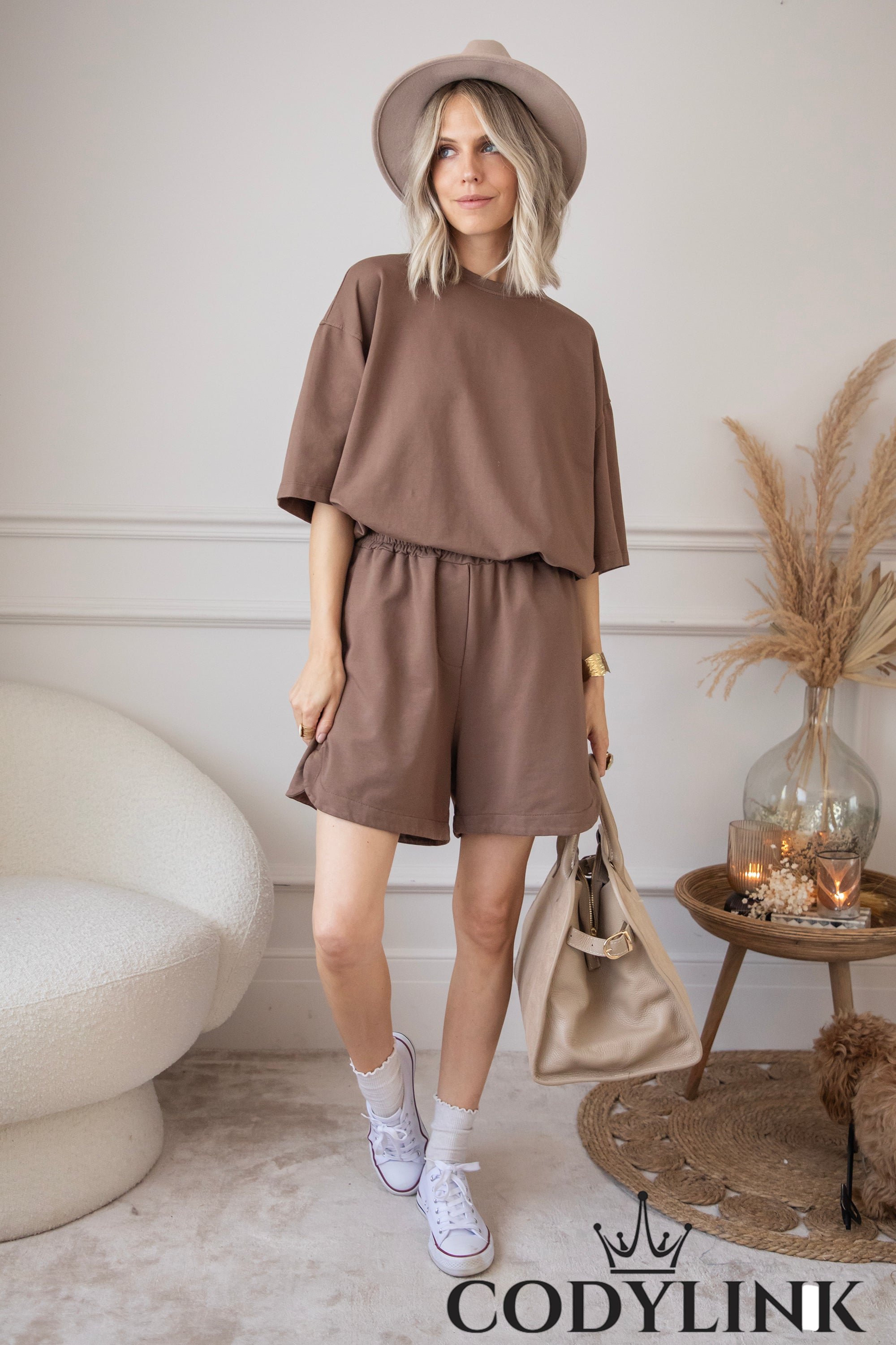Deze keer gaan we voor een look die net dat tikkeltje meer casual aanvoelt! De Jill collectie bestaat uit shortjes & T-shirts, allemaal loose fits die heerlijk nonchalant en sportief ogen dankzij hun effen katoenblend 🤎 Het zijn echt van die stuks die je zonder nadenken aantrekt en er toch stylish uitziet. Werk je look stijlvol af met een grote lederen tas, sneakers en een hoed, en je bent helemaal klaar om te boarden, chillen of de stad in te trekken!