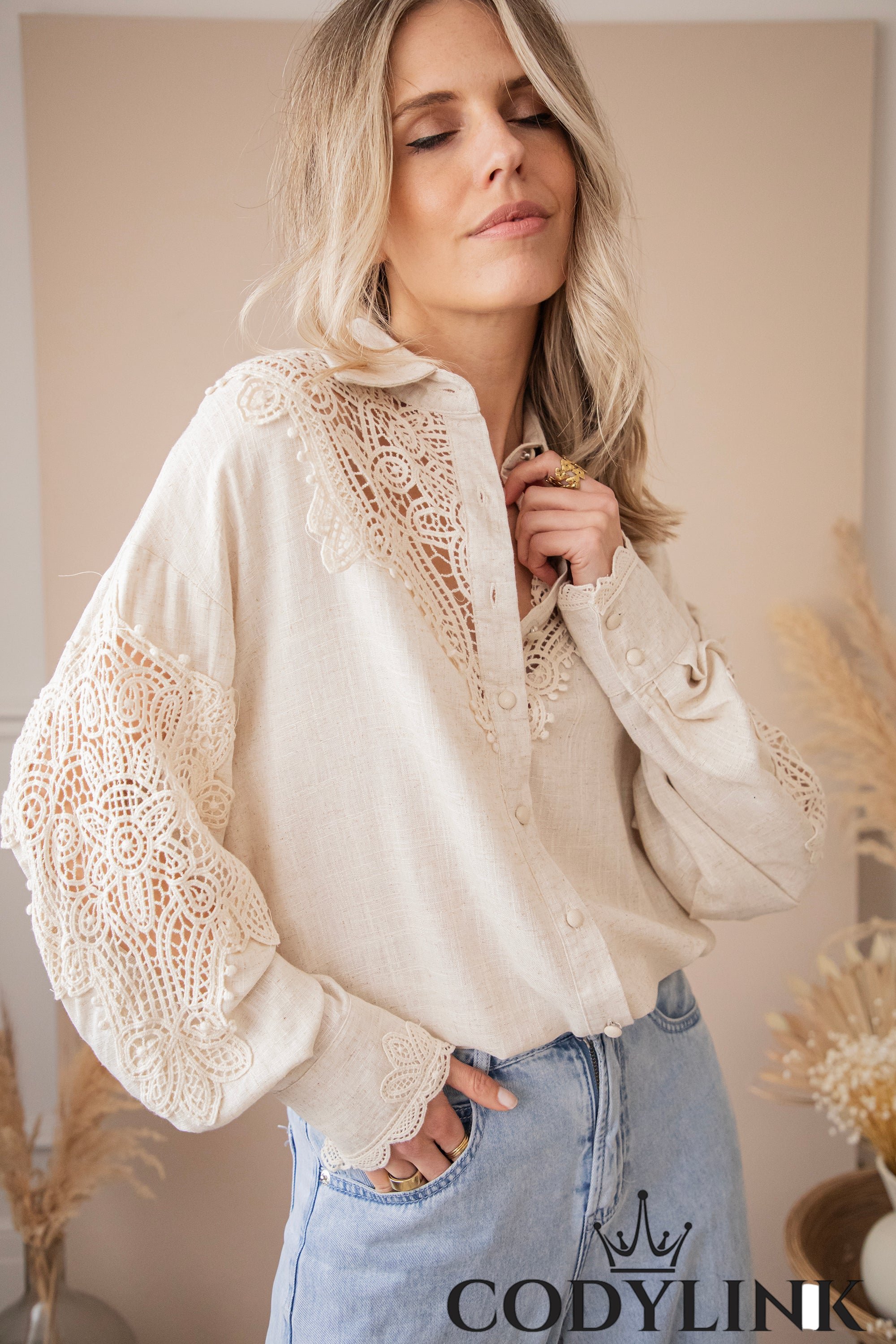 We kunnen niet genoeg krijgen van de kanten blouses! Dus ben heel enthousiast om onze 'Lacy Grace' terug in de collectie te hebben 🥹 Samen met je jeansbroek creëren ze een effortless elegant look 🎀 Hier zijn de mouwen en de hals gezegend met een prachtig staaltje kantwerk! De stof bestaat uit 30% linnen, een must voor een fris gevoel all day long!