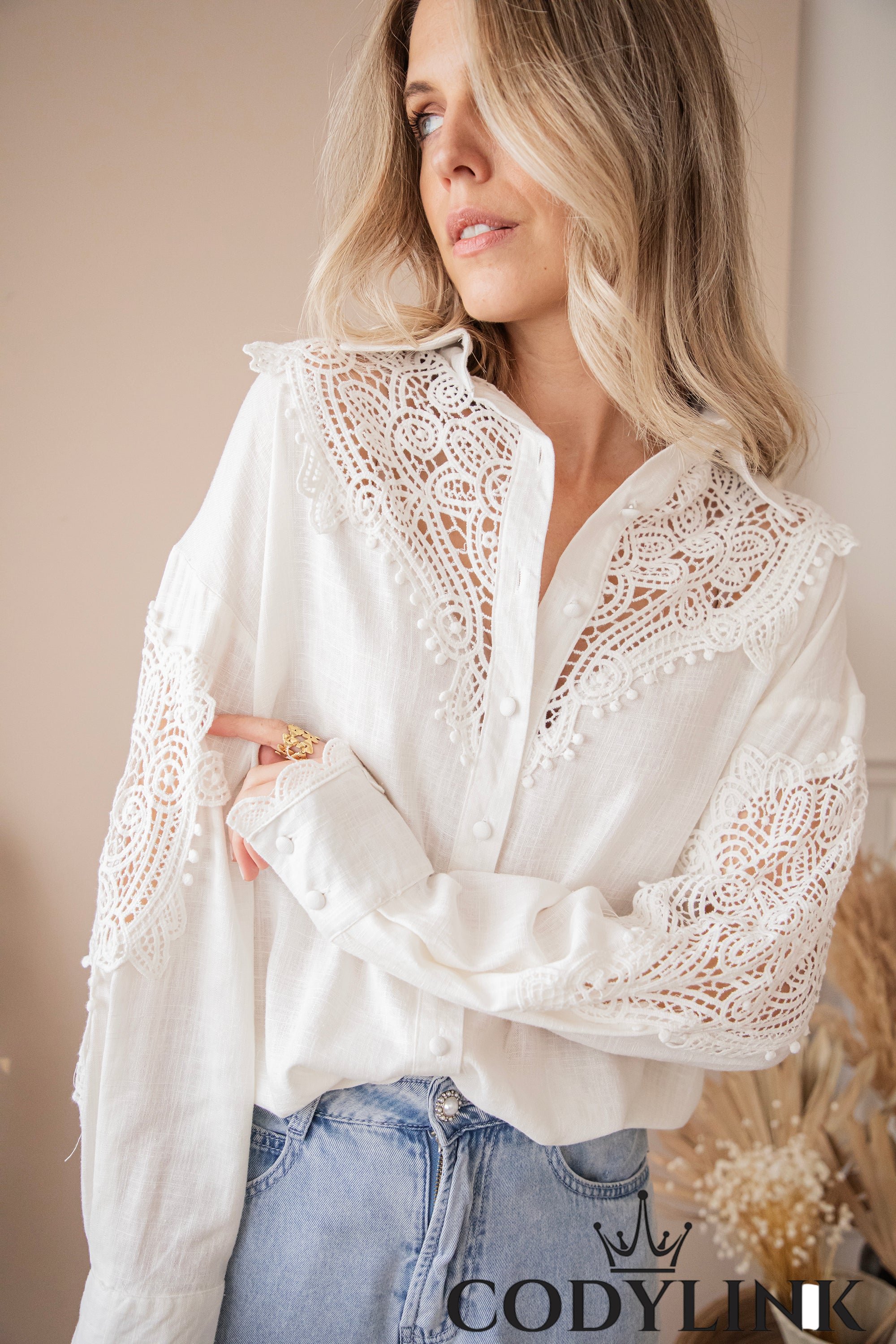 We kunnen niet genoeg krijgen van de kanten blouses! Dus ben heel enthousiast om onze 'Lacy Grace' terug in de collectie te hebben 🥹 Samen met je jeansbroek creëren ze een effortless elegant look 🎀 Hier zijn de mouwen en de hals gezegend met een prachtig staaltje kantwerk! De stof bestaat uit 30% linnen, een must voor een fris gevoel all day long!