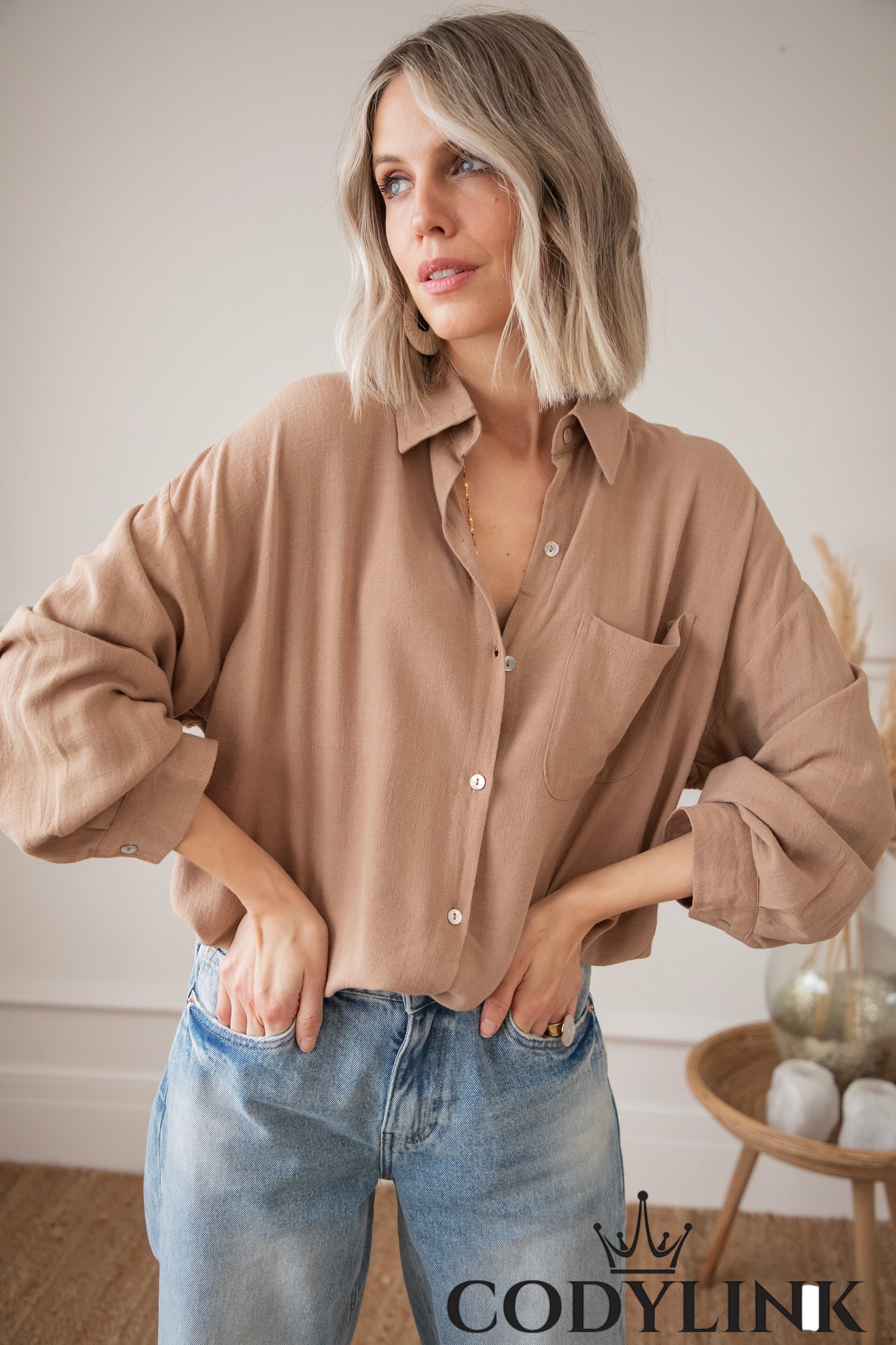 Loose Linen heeft een losse pasvorm en valt lekker soepel rond je lichaam! Thanks to viscose en 80% linnen! Echt een zaligheid om te dragen... De achterkant valt ook ietsje langer. Ik vind het trouwens heel leuk om de mouwen op te stropen!