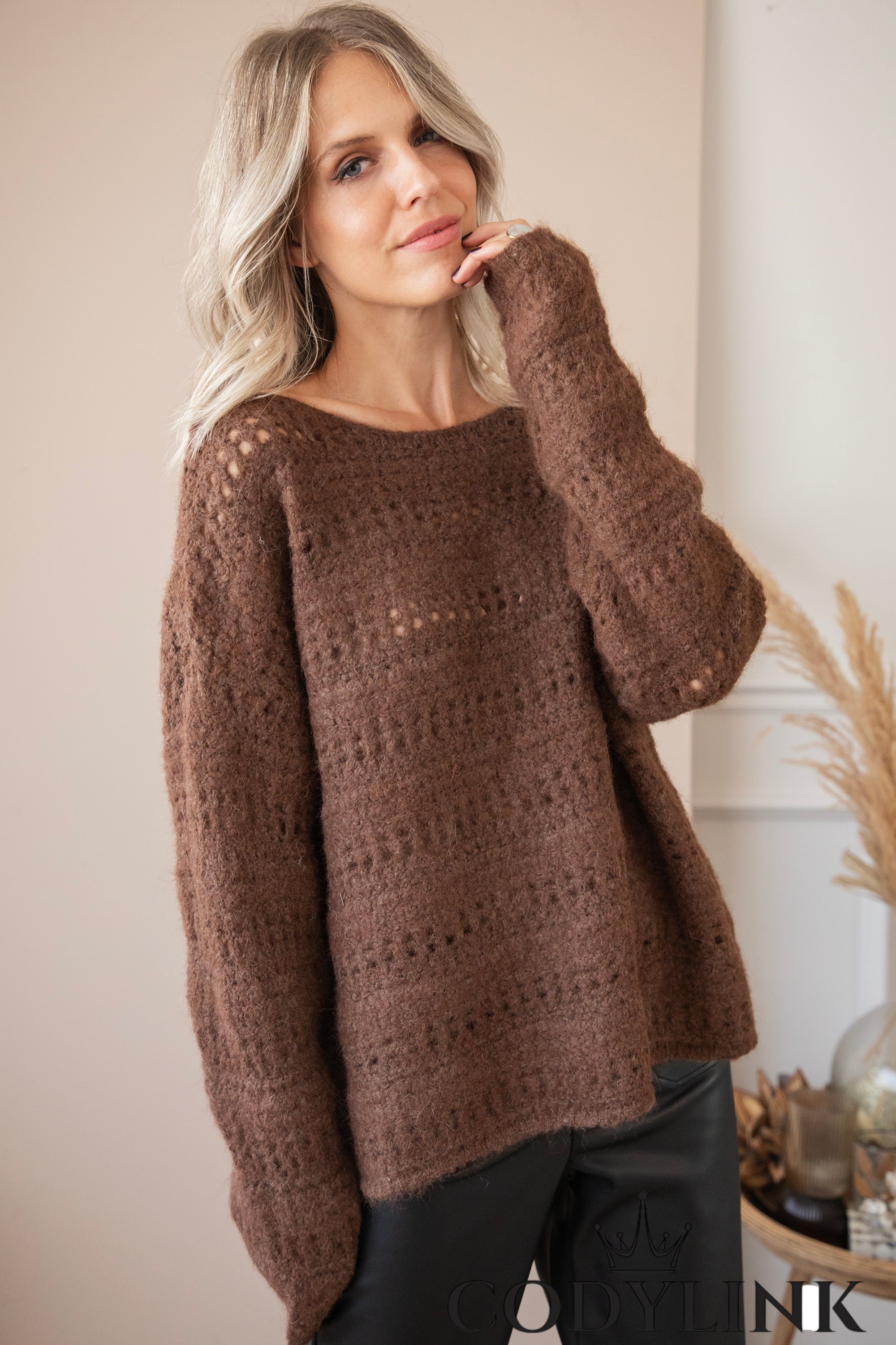 Bij zo’n ruim en zacht model kies ik zelf graag voor een PU-leather broek, zoals de Leather Noir of de Essential Skinny, voor dat stoere contrast 🖤. Of je ‘m nu casual draagt in de stad, of styled voor een chique herfstlook: deze trui is echt een winner en ik gun iedereen het plezier van zo’n cozy item!