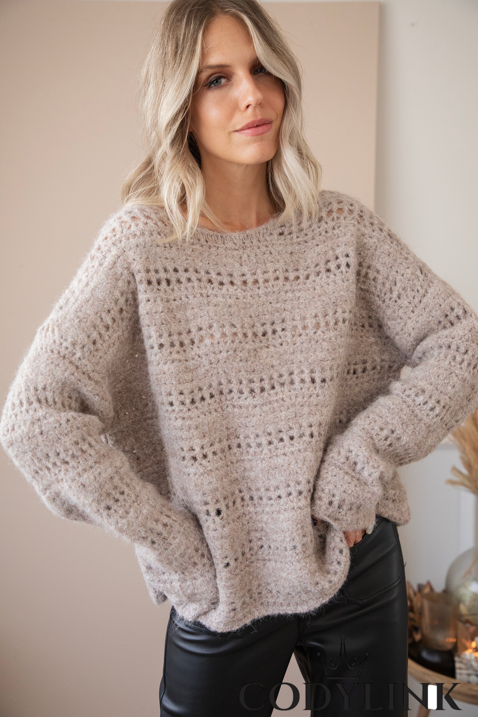 Bij zo’n ruim en zacht model kies ik zelf graag voor een PU-leather broek, zoals de Leather Noir of de Essential Skinny, voor dat stoere contrast 🖤. Of je ‘m nu casual draagt in de stad, of styled voor een chique herfstlook: deze trui is echt een winner en ik gun iedereen het plezier van zo’n cozy item!