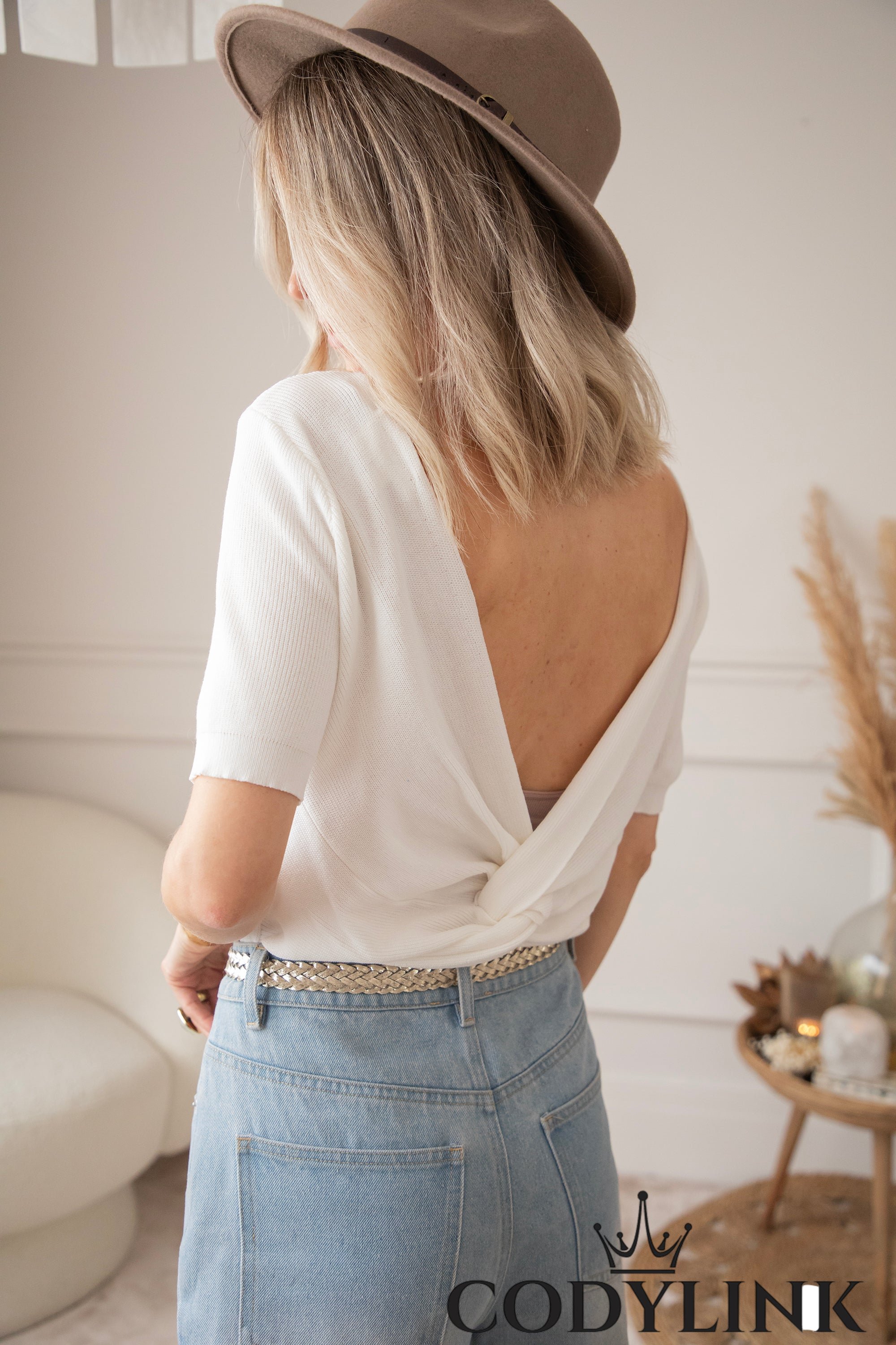 Draag haar solo voor een vrouwelijke look met open rug, of stijl haar met een mooie bralette eronder voor nét dat beetje extra. Ik draag hier een subtiel topje dat wat lager komt. Voeg een tasje toe, een paar juwelen en je bent helemaal ready, van koffietje tot dinner date ✨