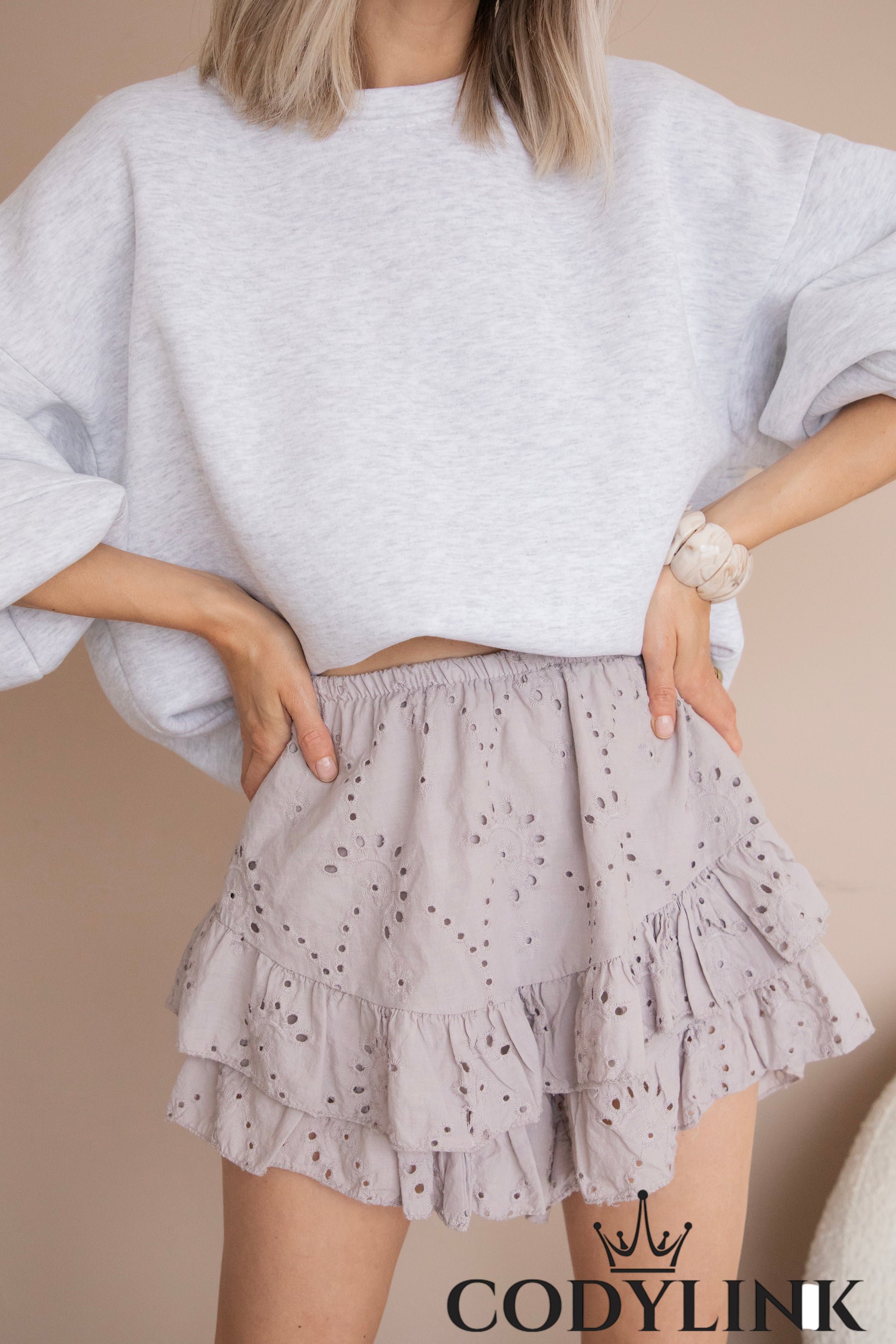 Je voelt je zo comfy in deze skort. Het is letterlijk een shortje maar het lijkt een rokje. Ideaal als je wel girly wil gaan maar toch het comfort wil van een shortje. Het gelaagde effect en de schuine afsnijding zorgen voor wat extra beweging in de look.